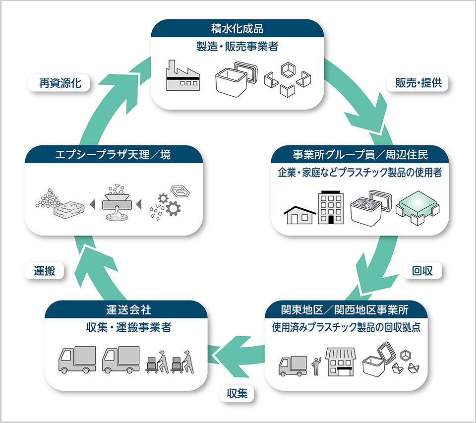 1991年に、発泡スチロール再資源化協会(現、発泡スチロール協会[JEPSA])を、原料メーカーや成形メーカーが結集して設立し、リサイクル拠点エプシー・プラザで発泡ポリスチレンのリサイクルに努めています。