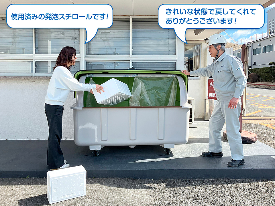 ご家庭で出た使用済み発泡スチロールを回収ボックスへお持ちください。